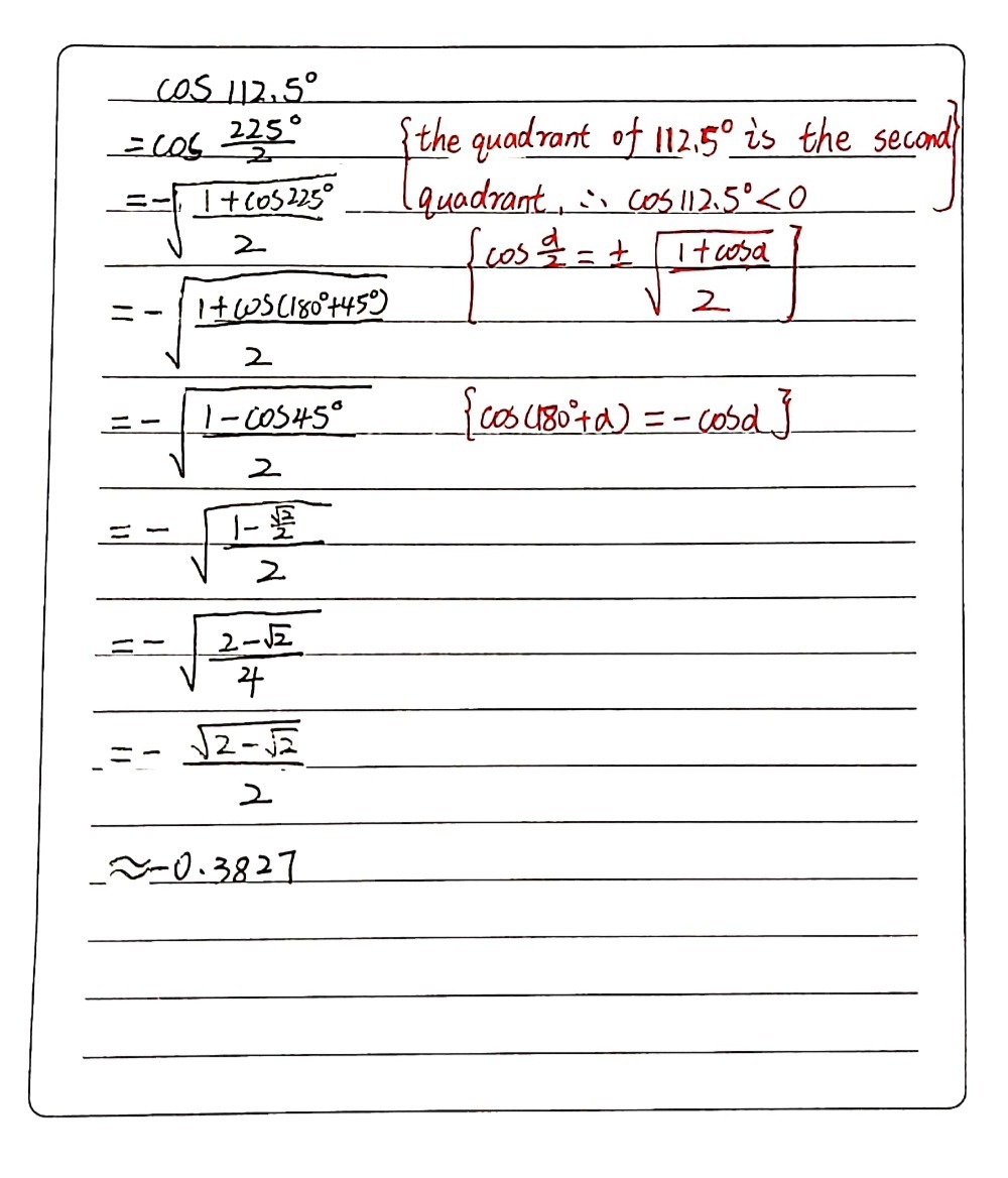 Use The Half Angle Formulas To Simplify The Chegg Com from media.cheggcdn.com It explains how to find the exact value of a trigonometric expres. For easy reference, the cosines of double angle are listed below: 2 x 2) d x. A) sin 2θ = 2 sin θ cos θ We will use these formulas to determine the exact values of trig functions of certain angles in terms of half or double values. Csc( 7π 8) = 1 sin(7π 8) call sin( 7π 8) = sina (quadrant ii) cos2a = cos( 14π 8) = cos( π 4 +2π) = cos(π 4) = √2 2. Now using the sine half angle formula as given, substituting the values of \theta we get, we know that. Putting in 150 for x, and using the plus sign since 75 is in q1, we get sin(75) = sqrt((1+sqrt(3))/2).